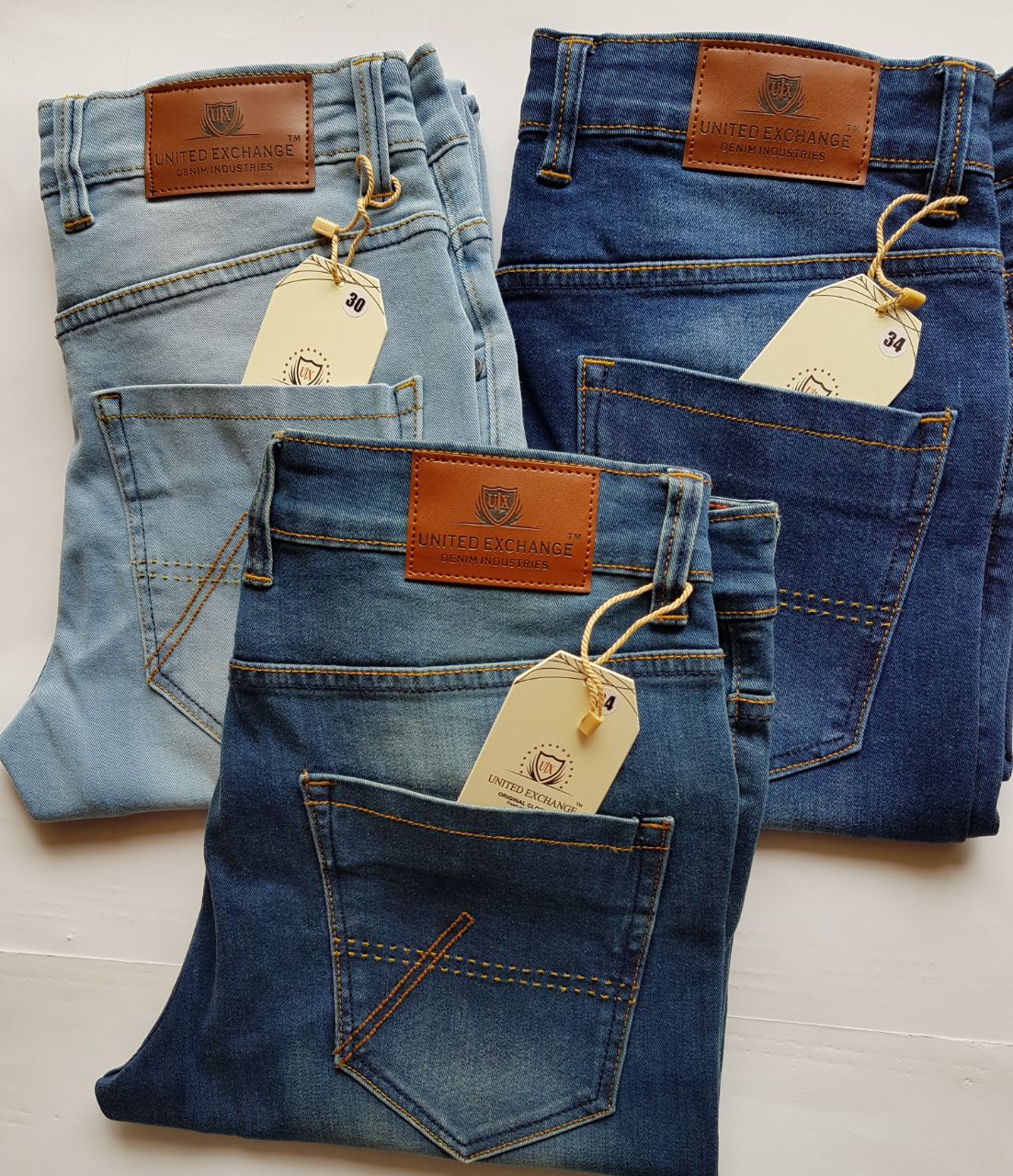 UNITED EXCHANGE JEANS SHADE = 6 SIZE = 30 TO 36 RATIO = 1221 RAYMNDS LYCRA FABRIC FABRIC MOQ= 40, PC ***☑☑☑